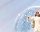 „Jesus trägt Dich“ Glitter-Globus mit Musik, Jesusskulptur, Porzellansockel und Goldakzenten