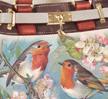 „Rotkehlchen-Duett“ Einmalige Künstlerhandtasche von Ursula Band mit Goldakzenten Aus gekörntem Kunstleder von Hand gefertigt und in modischem Colour-Blocking-Design gestaltet. Vorder- und Rückseite zeigen ein einmaliges Rotkehlchen-Motiv von Ursula Band. Goldplattierter Metallbeschläge und Rotkehlchen-Anhänger. Insgesamt vier Fächer im Innenbereich erleichtern Ihnen die Organisation Ihrer persönlichen Sachen: ein verschließbares Innenfach, zwei kleinere, o ene Innenfächer und das mit einem Reißverschluss verschließbare Hauptfach. Größe: 32 x 23,5 x 8,5 cm (B x H ohne Gri x T)