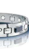 Erleben Sie vier kraftvolle Elemente der Natur in einem einzigartigen Armband. Handgefertigt aus massivem Edelstahl, weist dieses schwarz ionenplattierte Armband eine ultramoderne gebürstete Textur auf. Das elegante Design mit gefalteten Gliedern verleiht ihm eine exible und bequeme Passform. Im Inneren be nden sich auf beiden Seiten vier separate Inlays, jeweils bestückt mit den Elementen Kupfer, Germanium, Turmalin und einem 3.500-GaußHochleistungsmagneten – Elemente, denen man heilende Wirkungen nachsagt. Ein echter schwarzer Saphir funkelt in der Mitte des Armbands. Umfang: geeignet für die meisten Handgelenke