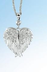 Der Herzanhänger ist edel mit Rhodium plattiert und viele glitzernde Kristalle zieren die beiden Engels ügel. Die Flügel lassen sich ö nen und das Medaillon dahinter bietet Platz für ein geliebtes Bild. Die Rückseite ist mit der Botschaft