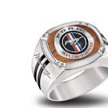 In meisterhafter Handarbeit aus massivem Edelstahl gefertigt, wurde dieser markante Herrenring speziell entworfen, um viele der charakteristischen Merkmale des Ford Mustang in einem stilvollen Retro-Look einzufangen. In der Mitte zeigt er eine maßgefertigte Einlage aus echtem Holz mit einem erhabenen Relief des originalen Ford Mustang-Logos. Auf dem Ringband ist zu beiden Seiten des Zentrums der Mustang-Schriftzug zu sehen und zwei schwarze Rennstreifen führen um das Band. Verfügbare Größen: 8 – 15 Bitte auf Bestellschein eintragen. Artikel-Nr.: 01-29020 • € 119,90 (zahlbar auch in 2 Monatsraten zu je € 59,95) zzgl. € 8,95 Versand