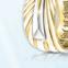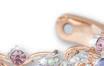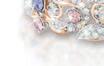 Der aus Kupfer von Hand gefertigte Armreif beeindruckt mit über 100 funkelnden Schmucksteinen, die die sonnenverwöhnte Schönheit des Frühlings symbolisieren. Rosafarbene Steine, die an die geliebte Kirschblüte erinnern, glitzern zusammen mit drei violetten Kunstedelsteinen. Die „Blüten“ sind von einem ligranen Rankenwerk mit Aurora-Borealis-Steinen in blattförmigen Fassungen umgeben. Mit zwei eingesetzten Magneten. Größe: Passend für fast jedes Handgelenk