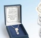 De hanger is handgemaakt van 925 sterling zilver en heeft een prachtig gebeeldhouwde parelmoer roos. Een pavé van witte topaas dient als bloemsteel en leidt tot een spannend glinsterende peervormige echte witte topaas. De kostbare platinalaag zorgt voor nog meer glans. Inclusief poëtische gedichtenkaart (in het Engels).