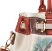 De handtas is met de hand van gegreineerd kunstleer vervaardigd en vormgegeven in een modieus colour blocking design. Op de voor- en achterkant staat een uniek roodborstjes-motief van Ursula Band. Met goud geplatteerde metalen beslagen en roodborstjes-hanger. In totaal vier vakken binnen vergemakkelijken de organisatie van uw persoonlijke spullen: een afsluitbare binnenvak, twee kleinere, open binnenvakken en het met een ritssluiting afsluitbare hoofdvak. Afmetingen: 32 x 23,5 x 8,5 cm (B x H zonder handgreep x D)