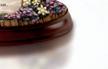 Schaal van kunstglas met vogelartwork van Adrian Rigby en een gemodelleerd roodborstje