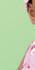 Gekleed in een roze en wit geruite jurk met bijpassende hoed