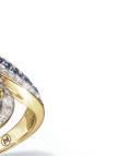 “Vlucht van de kolibrie” Met goud geplatteerde hanger met twee echte diamanten De kunstzinnig met de hand vervaardigde hanger is voorzien van een kostbare goudplattering en geeft de fascinerende kolibrie tijdens zijn vlucht weer, alsof hij boven een bloesem zweeft. De jn gemodelleerde vleugels adderen en trillen met hun bewegingen en leggen het licht bij elke slag vast. Twee echte witte diamanten fonkelen als ogen van de kolibrie. Rug en staart bootsen de structuur van echte veren na. Afmeting hanger: 1,9 cm; Lengte halsketting: 45,7 cm