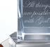 De handgemaakte sculpturale gegoten basis is met de hand beschilderd in elegant zwart en bevat de boodschap “Mijn zoon, mijn trots, mijn vreugde“ (in het Engels) in grote zilveren letters. Op de roterende kwartsklok staat de inspirerende zegen op de achterkant: “Mijn zoon, moge God je altijd beschermen en je kracht geven“ (in het Engels). Op het zilveren metalen plaatje op de basis wordt GRATIS de naam van uw zoon gegraveerd. Hoogte: 17,8 cm