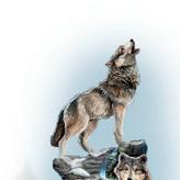 Der Turm aus Acrylglas ist mit einem faszinierenden Wolfsmotiv des renommierten Naturkünstlers Al Agnew verziert. Auf der Spitze des Turms stehen zwei handgefertigte und von Hand bemalte Wolfsskulpturen auf einem vereisten Felsvorsprung aus Kunstglas. Auf Knopfdruck lässt sich der Turm von innen heraus beleuchten. Die in Walnuss gebeizten edlen Holzverkleidungen runden das meisterhafte Design perfekt ab. Höhe: ca. 40 cm