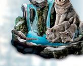 Diese majestätische Wolfsskulptur bietet einen seltenen Blick auf die Natur, den nur wenige jemals erleben werden. Die von der Zeit gezeichnete Felsformation, das rauschende Gewässer und das Paar prächtiger Wölfe mit seinen Welpen sind aus bestem Skulpturenguss von Hand modelliert. Jedes feine Detail ist in naturgetreuen Farben von Hand koloriert. Inspiriert wurde dieses Deko-Meisterwerk von den Bildern des renommierten Naturkünstlers Al Agnew. Integrierte LED-Lichter beleuchten den Wasserfall stimmungsvoll.
