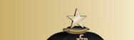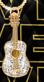 Ein funkelnder goldfarbener Gitarrenanhänger ziert einen der Tragegri e