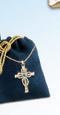 Fachmännisch in Handarbeit aus massivem 925er Sterling-Silber gefertigt und für maximalen Glanz mit Rhodium plattiert, zeigt das Zentrum dieses religiösen Schmuckstücks ein atemberaubendes Kreuz, das von einer kostbaren Vergoldung umrahmt ist und mit echtem weißen Topas funkelt. Rund um das Kreuz verlaufen ebenfalls vergoldete „Strahlen“, die die Ränder des eleganten Anhängers mit insgesamt über 30 weiteren Topas-Edelsteinen berühren. Größe Anhänger: 2,2 cm; Länge Halskette: 45,7 cm