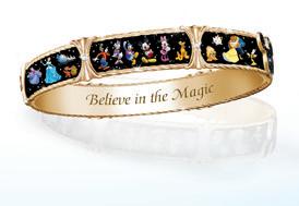 Dieses hübsche und o ziell lizenzierte Damenarmband ist mit 29 DisneyFiguren, 20 funkelnden Kristallen und einer kostbaren Goldplattierung verziert. Das detaillierte Artwork zeigt beliebte Figuren wie Micky Maus und seine Freunde, Schneewittchen, Cinderella, Belle, Winnie Puuh und noch viele weitere. Dieses stilvolle Disney-Accessoire hat eine Größe, die den meisten Handgelenken passt und das Armband lässt sich leicht an- und ablegen. Die Innenseite des Armbands ist mit der Gravur „Glaube an die Magie“ (auf Englisch) versehen.