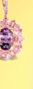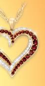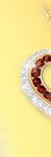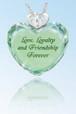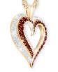 “Lerse roos” Hartvormige hanger van gefacetteerd kunstglas, bezet met twee witte topazen en een avondsmaragd