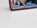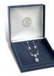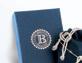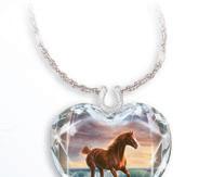 De met de hand vervaardigde, hartvormige hanger is in zacht blauw gehouden en toont binnenin de “Danser in de branding”, een paardenkunstwerk van Chuck DeHaan. De halsketting is van 925 sterling-zilver. Net als het hoe jzer, dat ketting en hanger met elkaar verbindt. Het hoe jzer is met echte kristallen bezet. De hanger wordt in een edel uwelen zakje inclusief geschenkbox en echtheids-certi caat geleverd.