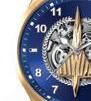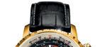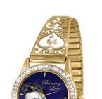 De robuuste roestvrijstalen kast is voorzien van een kostbare goudplattering. De in het midden open diepblauwe wijzerplaat geeft een blik vrij op het hoogwaardige mechanische uurwerk binnenin. Met rodiumgeplatteerde cijfers, Concorde-silhouet met goudaccenten en echt leren band.