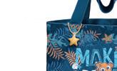 Deze gewatteerde sto en tas, met o ciële licentie van Disney/Pixar, is gemaakt van poly twill. De kleurrijke illustraties van Nemo, Dory en Rascal zijn te zien op een blauwe, tropische achtergrond, terwijl het opschrift “MAKE A SPLASH” (“Laat een indruk achter”) een speels tintje toevoegt. De binnenkant van de tas is gevoerd met stof en heeft twee insteekvakken en een ritsvak. De bovenkant van de tas kan ook worden afgesloten met een rits om je spullen veilig te bewaren. Een goudkleurige, driedimensionale hanger met zeester op de schouderband maakt dit Disney-accessoire helemaal af. Afmeting: 35,6 x 27,9 cm (B x H)