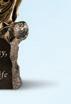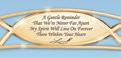Achterzijde met inscriptie: “Een zachte herinnering dat we nooit ver van elkaar zijn, mijn geest zal voor altijd in je hart voortleven”.