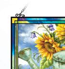 De levendige vogelkunst van de beroemde natuurschilderes Dona Gelsinger is meesterlijk weergegeven op deze exclusieve zonnevanger. De zonnevanger van echt glas legt het grappige rendez-vous van twee zwartkopmezen in een veld vol zonnebloemen perfect vast. De kleurrijke randen doen denken aan traditioneel glas in lood. Inclusief een decoratieve ketting om op te hangen. Beperkt tot 95 branddagen. Afmetingen: 15,2 x 19,1 cm (B x H) Artikel-Nr.: 01-33485-002 • € 59,90 plus € 8,95 verzendkosten
