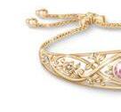 De bolo armband is weelderig verguld met goud. In het midden staat een prachtig vlindermotief van kunstenares Lena Liu. Tien met de hand gezette kristallen accenten geven een hemels accent aan de gesculpteerde ranken en bloemen aan elke kant van de armband. De armband heeft een vlindervormige sluiting. Inclusief een sentimentele gedichtenkaart (in het Engels) en elegant presentatiedoosje.