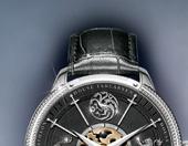 e Bradford Exchange presenteert nu dit unieke GoT verzamelaarshorloge, een waardige herinnering aan een van de beste series uit de tv-geschiedenis! De wijzerplaat toont prominent de wapenschilden van de vier machtigste adellijke huizen, Lannister, Stark, Baratheon en Targaryen. Het metalen tandwielontwerp in het midden met zijn gouden ion-plating maakt het horloge nog mooier. Gedetailleerde zwaarden dienen als uurindicators. De achterkant van de roestvrijstalen kast is gegraveerd met de IJzeren Troon, waar de wapenschilden van de grote huizen van Westeros omheen zijn verzameld, van de direwolf van de Starks tot de Kraken van de Greyjoys. Het nauwkeurige quartz uurwerk zorgt voor een betrouwbare tijdmeting, terwijl de echt leren band dit indrukwekkende „Game of rones“ sieraad perfect afrondt. Diameter horlogekast: 3,8 cm Artikel-Nr.: 01-36971-001 • € 199,80 (ook betaalbaar in 4 maandtermijnen à € 49,95) plus € 8,95 verzendkosten