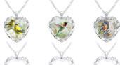 Das farbintensive Porträt eines Silberwolfs von Eddie Le Page wird von einem Halbmond eingerahmt, dessen Ober äche mit einer rhodiumplattierten Filigranarbeit versehen ist. Das ligrane Muster ist mit echten Svenka™-Kristallen besetzt. Im Dunkeln beginnt der Halbmond darunter leicht bläulich zu schimmern. Auf die Verbindungsöse der Halskette ist ein echter Diamant von Hand appliziert. Auf der Rückseite des Anhängers steht die feine Gravur: „Spirit of the Wilderness“ (dt. „Geist der Wildnis“). Breite Anhänger: 3,4 cm, Länge Halskette: 45,7 cm
