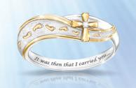 Das Armband besteht aus sieben einzelnen Gliedern, auf denen sich sieben der berühmtesten Werke von omas Kinkade präsentieren – perfekt in Farbe wiedergegeben. Auf der Innenseite jedes Glieds steht ein ermutigendes Wort –„Freude“, „Glaube“, „Weisheit“, „Liebe“, „Gelassenheit“, „Ho nung“ und „Schönheit“. Eine edle Goldplattierung und über 100 funkelnde Kristallsteine verleihen dem Armband noch mehr Glanz. Umfang: 17,8 cm
