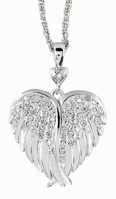 This edition is plated in rhodium platinum and depicts an intricate angel wing and feather design, accented with Svenka™ crystals. The wings are folded over to embrace an inner heartshaped locket that is perfect for holding your most precious photo. The reverse is engraved with: ‘Always By Your side’ in addition to feather motifs. The heart-shaped bale is adorned with a 1pt diamond. Item No. 526-CHA27.01