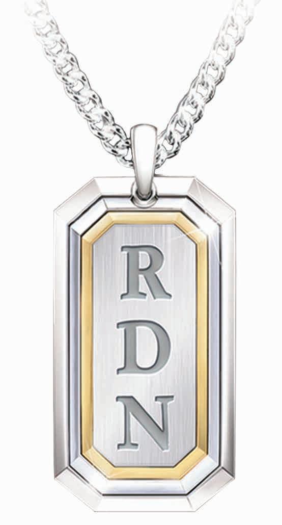 Handcrafted in solid stainless steel, this pendant is styled after a classic customised dog tag with raised, sculpted edges to give it a layered effect. Your grandson initials are etched front and centre and surrounded by accents in ion-plated 24-carat gold. The back of the pendant is etched with: ‘I am so Proud to Call you My Grandson’.