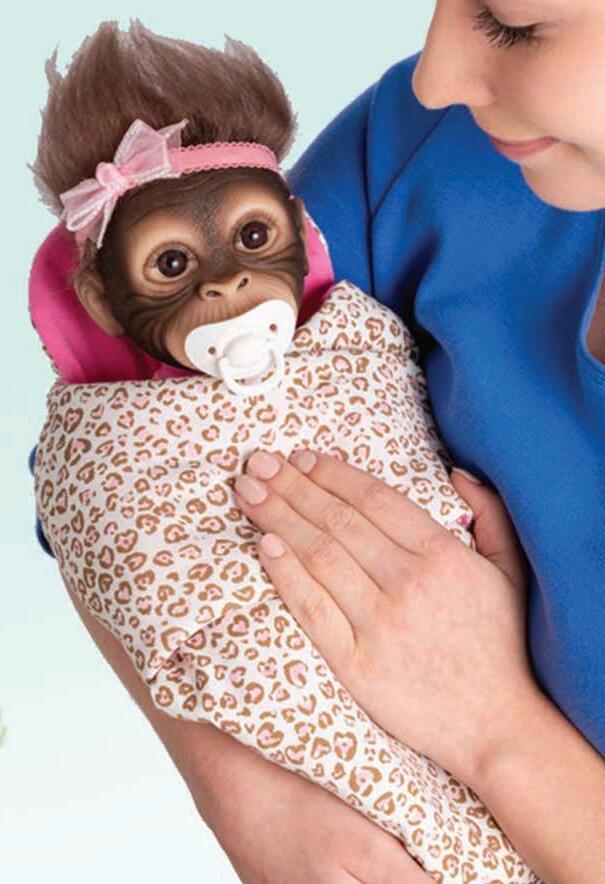 This lovable baby monkey is crafted of our signature RealTouch® vinyl with a cuddly cloth body that makes her irresistibly huggable. She’s handpainted to look So Truly Real® and sized at 22 inches to feel that way too! And she arrives in a pink polka-dot outfit to add to her sweetness!