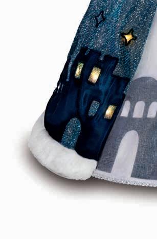 This heavenly doll is poseable with a head that turns from side-to-side, and her arms and legs can be gently moved to create a multitude of poses. Her floor-length coat features a silver-and-white brocade pattern tied at the waist with a silver belt. The faux fur trim of her gown is lined with more than 40 LED lights and she plays: ‘Silent Night’.