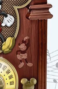 This licensed sculpture is handcrafted with authentic features and details of a vintage radio, including an arched top, raised-relief trim, and walnut finish. The speaker is crafted in the iconic shape of a Mickey Mouse head and features a raised-relief mesh texture and golden accents. The decorative tuner lights up and features two golden decorative knobs also in the shape of a Mickey Mouse head. Plays treasured Disney music.