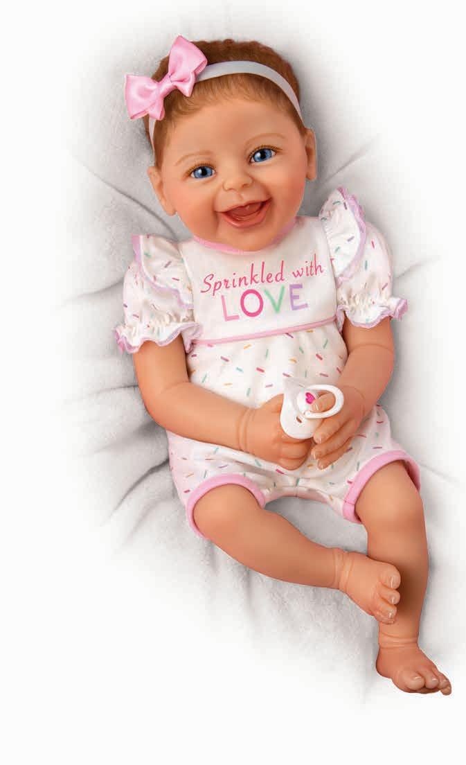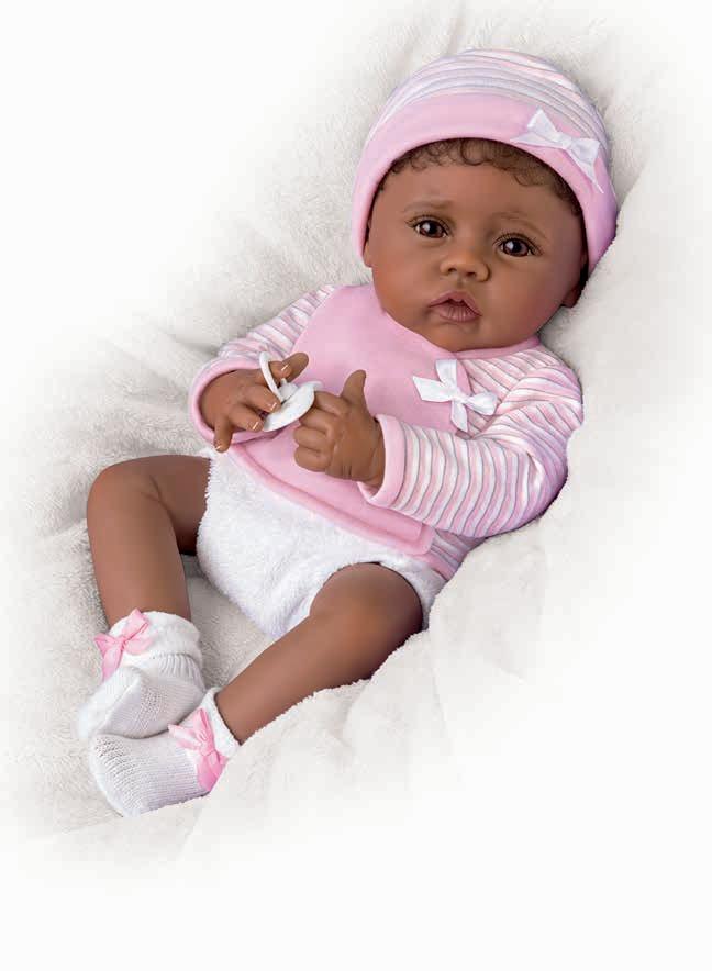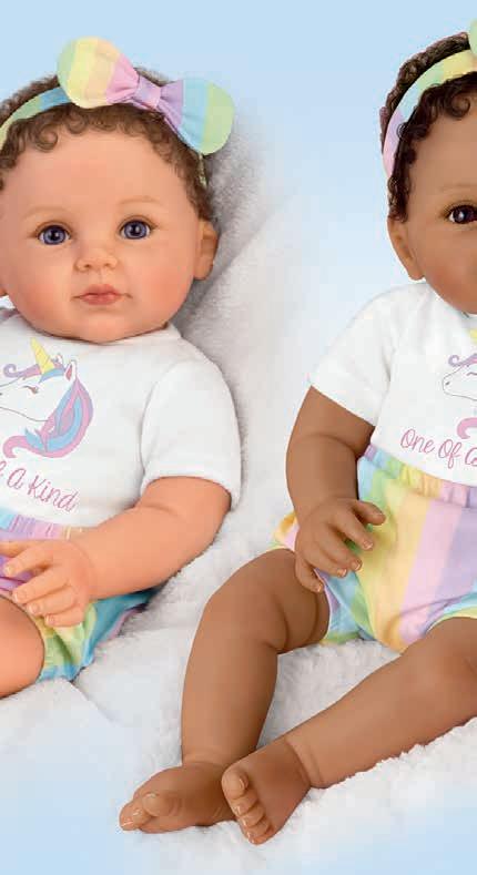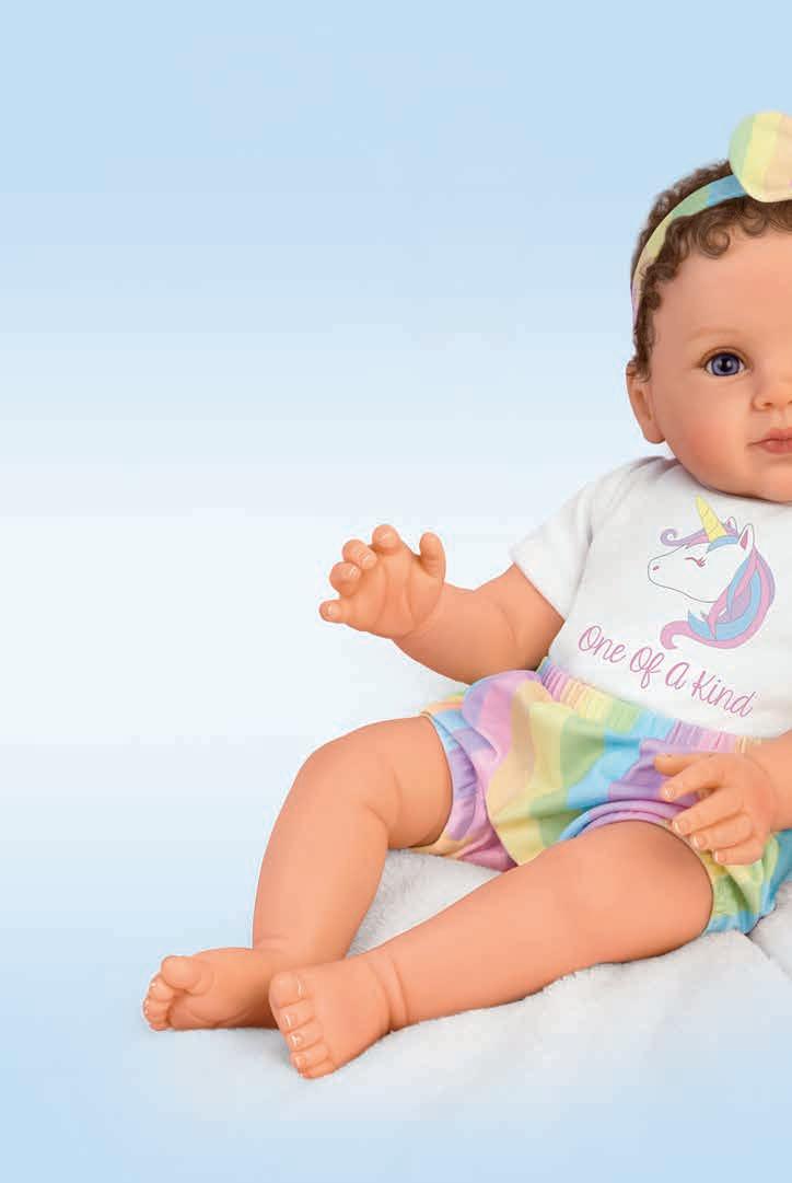 Figure on page 3, featuring fabric costume, to the weighted ‘Lilah’: 2023 Such A Doll Photo Contest Winner Baby Doll on page 10, with RealTouch vinyl and hand-rooted hair. Perfect additions to your heart and home, these first-of-a-kind masterpieces are expertly designed and handcrafted!