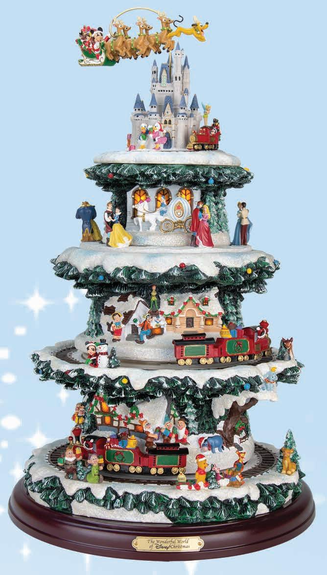 With 4 levels of rotating movement on this breathtaking Disney Christmas décor, the officially licensed Disney Express seems to ‘climb’ ever higher up the tree, lit by 20 LED lights. At the very top, Mickey’s at the reins of a Pluto-and-reindeer drawn sleigh that rotates around Cinderella’s magic castle. Plays a medley of carols.