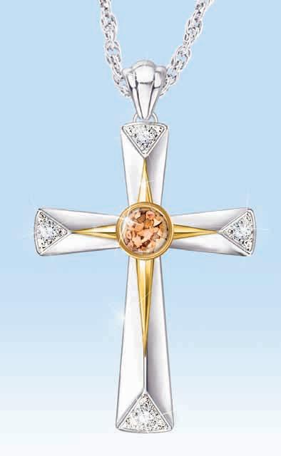This handcrafted solid stainless steel pendant features a classic cross with another raised, sculpted cross to give it a layered effect. A genuine white sapphire adorns the centre of the raised cross. The pendant reverse is etched with the blessing: ‘God Bless and Protect My Son’.