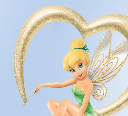 Playfully posed atop a polished mirror base, this pretty figurine is handcrafted of artist’s resin and handpainted in charming detail. Tinker Bell’s crystalline wings shimmer with a delicate golden pattern, the perfect complement to her sparkly green dress and matching shoes with their pearl-like pom-poms. With just a wave of her real metal wand, she’s created a magnificent, swirling heart of glittery golden ‘pixie dust’.