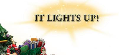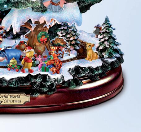Standing at 18 inches tall, this Disney tree is a soft-textured tree handcrafted with a changing array of pinpoint lights that create spectacular illumination. Golden beaded garland wrapping the tree catches the light, as do a number of specially-designed ornaments in the very familiar shape of Mickey’s ears and friends. A miniature holiday train rotates ‘round and ‘round the wood-toned display base at the touch of a switch. Press another button and you’ll listen as an 8-song medley of carols begins to play