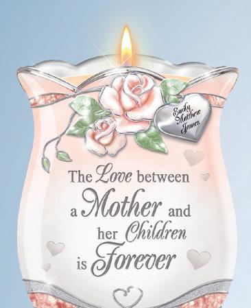 This Heirloom Porcelain® candleholder is embellished with: ‘The Love between a Mother and her Children is Forever’, and features a silver-toned heart charm personalised with up to three names to touch her heart.
