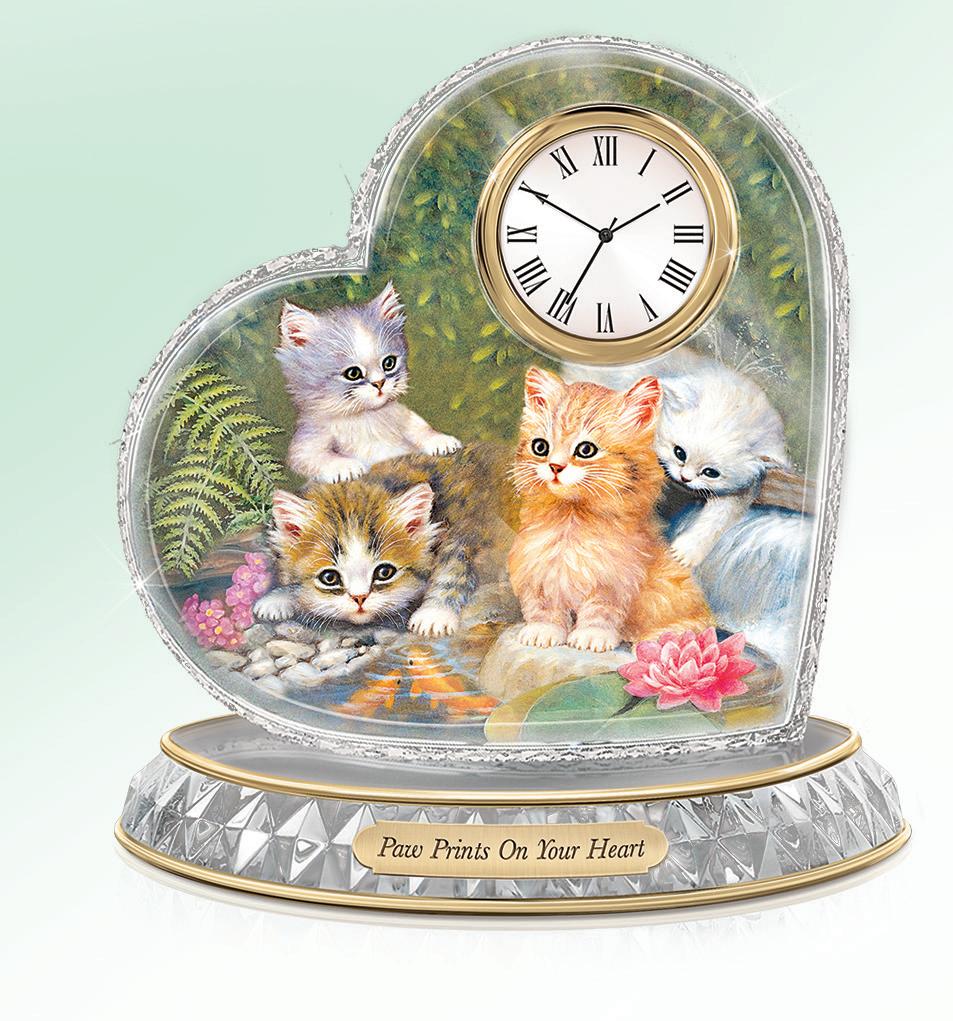 Handcrafted, this heart-shaped edition showcases faceted glass and artist Jürgen Scholz’s kitten art. A golden plaque engraved with: ‘Paw Prints On Your Heart’ accents the base of the 22-carat gold accented treasure.