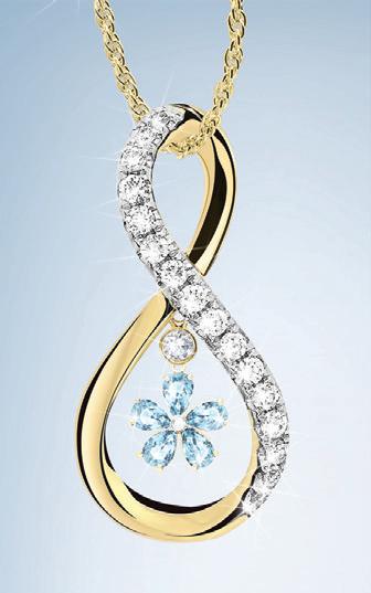 Handcrafted, this symbol of your love and remembrance depicts a blue topaz forgetme-not bloom set within an infinity design, accented with a Svenka™ crystal. 18-carat gold-plating in addition to a 1pt diamond in the circle above the flower.