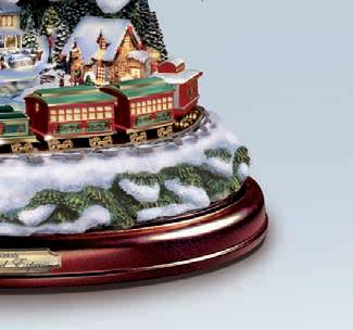 Expertly handcrafted of artist’s resin, each miniature train car in this collection showcases a glass globe with Donna Gelsinger’s beloved imagery. The train cars are lavished with festive decorations, gleaming silvery snowflakes, holiday messages and art from Dona Gelsinger. Arriving as Issue One, the engine car plays the melody of ‘Jingle Bells’ to get your Christmas spirit on track.