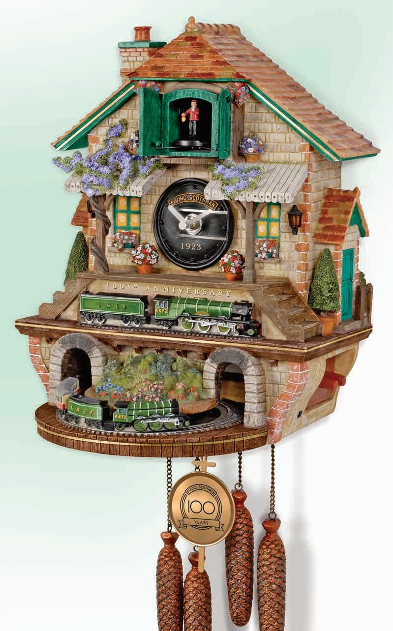 Crafted for you, just such a market-first collectable is the official Wallace & Gromit The Wrong Trousers 30th Anniversary Clock on page 7 of the catalogue, featuring a train with Feathers McGraw aboard rotating around the base. Or discover the licensed Flying Scotsman 100th Anniversary Sculpture on page 12, with bronze tones. Limited to just 4,999 individually numbered editions. Don’t wait to order!