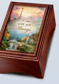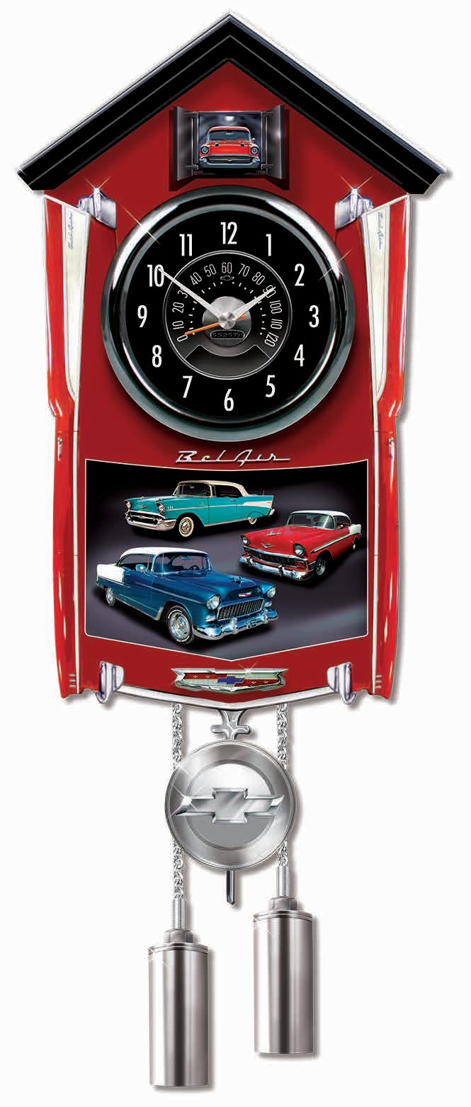 Graced by two of Mr. Kinkade’s famed artistic visions, the traditional old world styling cabinet showcases: ‘A New Day Dawning’, whilst ‘Everett’s Cottage’ enhances the face. At the beginning of each hour the tiny door at the top opens and a handpainted sculptural cardinal emerges, chirping a cheerful melody! Accurate Quartz movement, golden hands and a swinging brass pendulum.