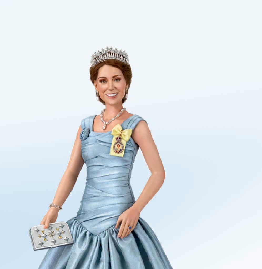 This poseable portrait doll is handcrafted in artist’s resin to capture her authentic likeness, while handpainting brings out the natural look of her lifelike eyes, smile and beauty. She is depicted in our recreation of the Alexander McQueen gown that Catherine wore at a State Banquet.