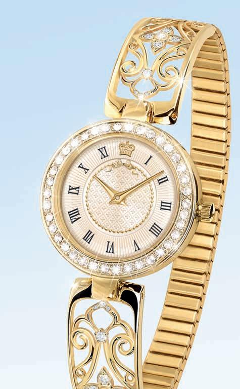 Handcrafted with over 50 Svenka™ crystals, this edition showcases a gold-plated casing. Features a cream-toned face with Roman numerals, golden hands, patterning from Her Majesty’s coronation gown, a crown at the 12 o’clock position and a golden bow beneath. The stretch-strap is embellished with stylised cross and fleur de lys pattern. Reverse depicts the official logo commemorating the Queen’s Jubilee, in addition to the individual edition number. Limited to 4,999 editions.
