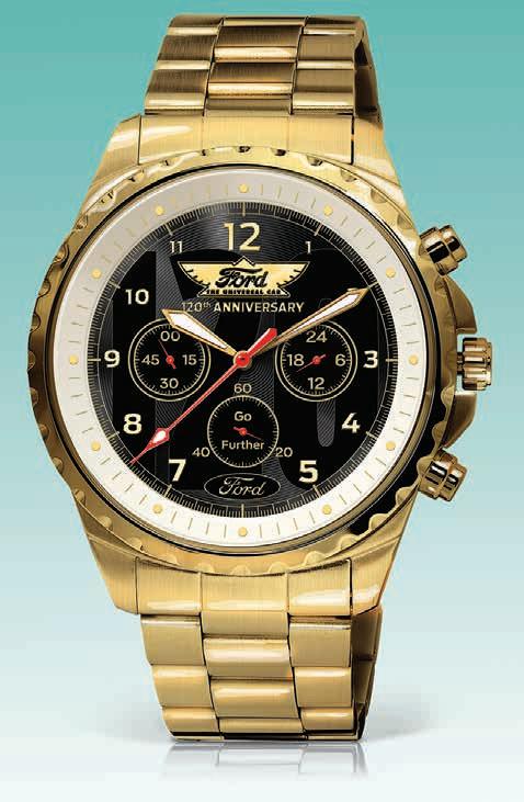 instalments of £24.99 • Plus £6.99 S&S* 120-Day Guarantee. Hinged bracelet fits most wrist. NEW Ford Motor Company 120th Anniversary Watch Officially licensed by Ford, this watch features a gold-tone, a precision Quartz movement, engraved tributes, a replica signature and a quote from Henry Ford himself. Individually numbered. Item No. 503-FA161.01 5 instalments of £49.99 Plus £9.99 S&S* 120-Day Guarantee. Face measures approx. 1.61 inches (4.1 cm) in diameter. Adjustable band fits most wrists. Officially Licensed by Ford Motor Company. Call our local rate UK-based order line 0333 003 1544 2 3 Simple Ways To Order: Online: www.bradford.co.uk For fast & totally secure ordering Phone: 0333 003 1544 UK centre open 24 hours a day, 7 days a week Post: Complete and send the Order Form in an envelope Did you know? Calls are charged at local rates from both UK landlines and mobiles but are also included in most network providers’ ‘free minutes’ packages! The Bradford Exchange Promise: Interest-free instalments • FREE personalisation on a range of editions • No-quibble satisfaction guarantees: Coins: 14 days Handbags & Clothing: 120 days Any non-personalised Jewellery items: 120 days All other non-personalised items: 365 days