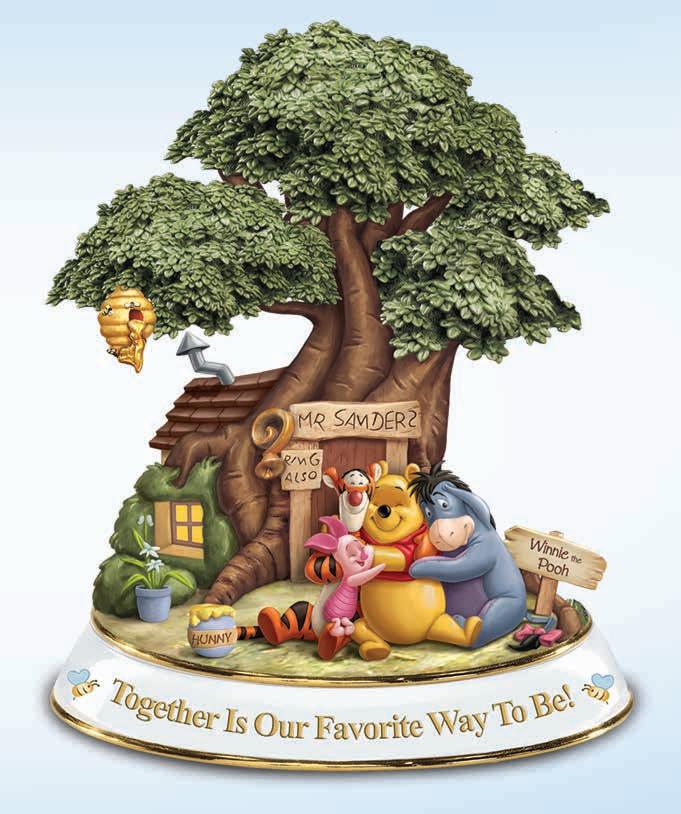 Licensed Disney sculpture that brings favourite ‘Winnie the Pooh’ moments to colourful life. From the top of Pooh’s ‘Mr. Sanders’ treehouse to the wise words featured on each golden trimmed base, each fully-dimensional edition captures classic moments of fellowship between best friends, handcrafted and handpainted.