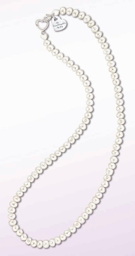 This sumptuous strand of genuine cultured freshwater pearls fastens with a clasp in the shape of a delicate heart for a graceful finishing flourish. Arrives in a custom-designed presentation box with the poignant ‘Grandma’s Pearls of Wisdom’ poem nestled inside.