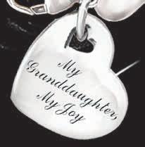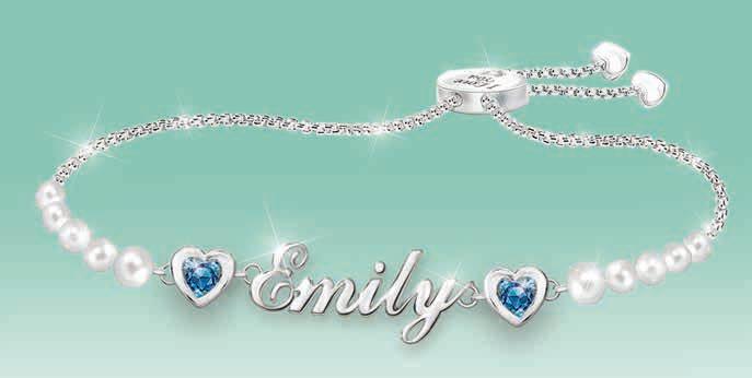 This rhodium-plated personalised jewellery is handcrafted with your granddaughter’s sculpted name and 10 cultured freshwater pearls. The name forms a centrepiece that is accented on either side by a heart, set with her crystal birthstone and cultured freshwater pearls which graduate in size. Its bolo-style design allows the bracelet to be adjusted to fit most wrists using a slider bead set with a diamond and engraved with, ‘I Love You’.