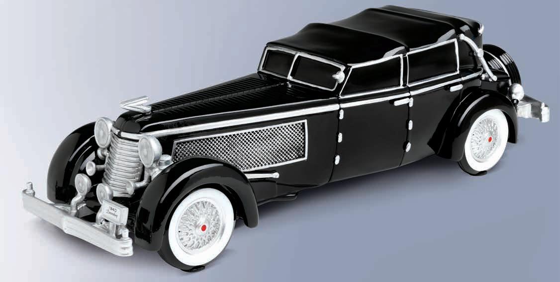 Precision-engineered with opening doors, this scaled model is tooled with over 150 parts and features. Copper finish. Opening front doors, ‘suicide door’ & hood. Steerable front wheels with smooth rolling rubber tires. Opening hood reveals a detailed V8 engine bay. Interior is detailed with factory-matched seat patterning, a detailed dashboard plus chrome trim.